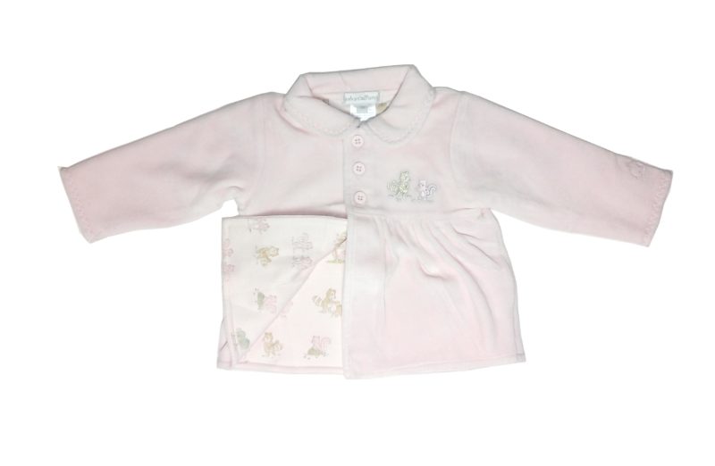 Cárdigan de algodón Pima. Broches y bordado en el frente. Forrado en algodón Pima estampado. 100% algodón Pima,  Exterior 85% Algodón – 15%  Polyester, Lavar a máquina con agua fría